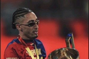 對于拉菲尼亞的遭遇,巴西人的巴薩隊友阿勞霍顯然沒有袖手旁觀。同樣在社交媒體上,阿勞霍曬出了拉菲尼亞手捧獎杯的照片對其進行聲援。