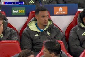 體育資訊11月05日訊 利物浦vs皇馬第21分鐘,轉(zhuǎn)播鏡頭給到阿諾德。此役阿諾德重回安菲爾德,替補(bǔ)待命。
