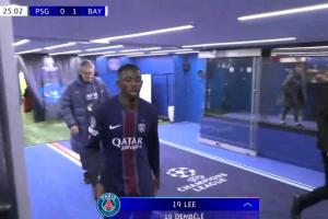 體育資訊11月05日訊 歐冠聯(lián)賽階段第4輪,巴黎對陣拜仁。25分鐘,登貝萊傷退,李剛?cè)侍嫜a(bǔ)出場。