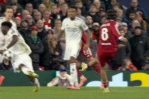 體育資訊11月05日訊 利物浦vs皇馬第31分鐘,索博打門(mén)擊中瓊阿梅尼手臂,裁判檢查點(diǎn)球,VAR介入。
