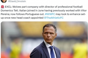 體育資訊11月5日訊 據(jù)知名記者奧恩斯坦報(bào)道,狼隊(duì)總監(jiān)多梅尼科-泰蒂離職。