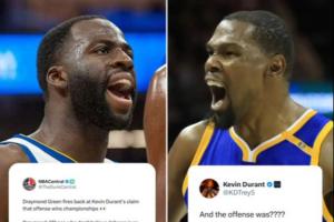 杜蘭特轉(zhuǎn)發(fā)了這則采訪對話,用評論繼續(xù)堅持自己的觀點:“當(dāng)時的進(jìn)攻呢?”