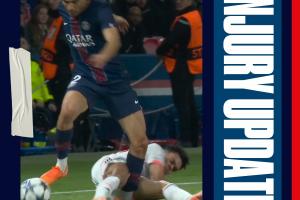 在巴黎對(duì)陣拜仁的比賽中,阿什拉夫因小腿受傷被迫離場(chǎng)。