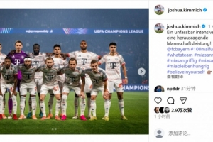 本場比賽也是基米希生涯第100次在歐冠出場,他在個人社媒曬出全隊合照,配文寫道:“在這一場緊張激烈的比賽中,球隊表現完美,達成歐冠百場里程碑!”