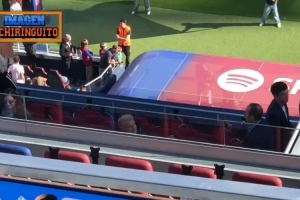巴薩今日在諾坎普球場(chǎng)進(jìn)行公開(kāi)訓(xùn)練,俱樂(lè)部主席拉波爾塔來(lái)到現(xiàn)場(chǎng)。