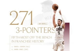 體育資訊11月8日訊 騎士官方發(fā)布紀錄,梅里爾以替補身份命中率271記三分,超越科沃爾排名騎士隊史第五。