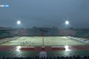 本場(chǎng)比賽,延邊龍鼎主場(chǎng)積雪嚴(yán)重,草坪都被染成了白色。