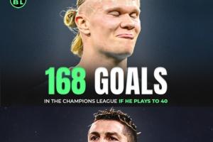 根據(jù)AI預測,如果哈蘭德能夠一直參加歐冠賽事,他在40歲時的歐冠進球數(shù)將達到168粒,成為歐冠歷史射手榜第一。目前歐冠歷史射手王是C羅,他在183場歐冠比賽中打進了140球。