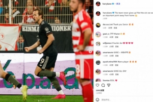 凱恩也在賽后通過社媒曬出自己進(jìn)球后的慶祝照,并配文:“這支球隊(duì)永不放棄!沒拿到我們想要的勝利,但從客場帶走重要一分??”。