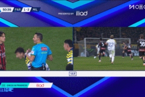 裁判在VAR的介入檢查后沒有判罰點球,米蘭暫時客場2-1領先!