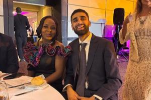 在大約100人的賓客名單中,只有少數(shù)人真正上前與希拉交談。她只會說很少的英語,愿意交流且非常友好,但不愿詳細談?wù)撍膬鹤印_@種謹慎顯而易見。但曾做過服務(wù)員的希拉很放松,愉快地與賓客們共舞。