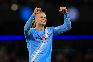 體育資訊11月10日訊 英超第11輪,曼城對(duì)陣?yán)锲值慕裹c(diǎn)戰(zhàn),哈蘭德破門(mén)。