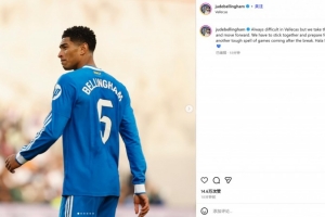 貝林厄姆曬出自己的比賽照,并配文:“客戰(zhàn)巴列卡諾總是很艱難,但我們拿到了一分并繼續(xù)向前看。我們必須團(tuán)結(jié)一致,為國(guó)家隊(duì)比賽周之后的又一輪密集賽程做好準(zhǔn)備。馬德里前進(jìn)!”
