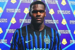 體育資訊11月10日訊 意甲第11輪國(guó)米主場(chǎng)迎戰(zhàn)拉齊奧的比賽之前,藍(lán)黑軍團(tuán)前鋒博尼領(lǐng)取了意甲官方頒發(fā)的10月最佳球員獎(jiǎng)項(xiàng)。