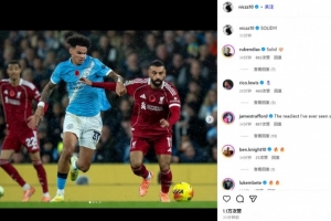 奧賴?yán)餐ㄟ^(guò)社媒曬出自己對(duì)位薩拉赫的比賽照,并配文“硬!”表達(dá)自己的興奮之情。