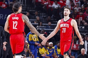 “他們的影響力常常得不到太多贊譽(yù),但他們能夠擠開人群爭搶進(jìn)攻籃板,通過掩護(hù)為我擋住防守人,完成籃下終結(jié),我對(duì)大個(gè)子球員們心懷感激?!盞D說道。