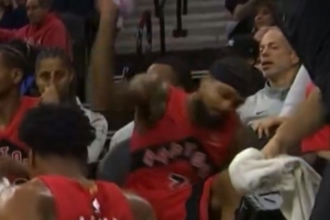 “很多人都認(rèn)為他應(yīng)該站起來(lái)道歉。我理解他的沮喪,他在比賽中摔倒得很尷尬,而且那是一場(chǎng)艱難的比賽,他們有很多失誤,最終沒(méi)能贏得比賽。但我不認(rèn)為這是正確的回應(yīng)方式。有人說(shuō)他像三歲小孩一樣,確實(shí)如此,這種事情經(jīng)常發(fā)生在有小孩的家庭里。但我認(rèn)為這不是合適的反應(yīng)。他應(yīng)該對(duì)此道歉,但他沒(méi)有這樣做,沒(méi)有任何反應(yīng)。我不知道他當(dāng)時(shí)是怎么想的,但作為一個(gè)普通人,我認(rèn)為他應(yīng)該有所表示。他不應(yīng)該坐在那里看著大家清理,尤其是當(dāng)水濺到隊(duì)友臉上時(shí)。他應(yīng)該幫助清理,而不是讓別人的生活變得更加困難。也許這是因?yàn)樗浅?jí)富豪,覺(jué)得這些人理應(yīng)為他服務(wù)。但我們不應(yīng)該輕易下結(jié)論。他看起來(lái)非常沮喪,可能只是心情不好而已。”Donnie Freeman表示。