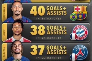 體育資訊11月10日訊 Score90統(tǒng)計(jì)了2025年五大聯(lián)賽邊鋒在俱樂部+國家隊(duì)比賽中參與進(jìn)球的數(shù)量,并列出榜單。