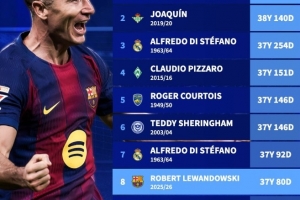 8、萊萬(巴薩,2025-26賽季):37歲80天