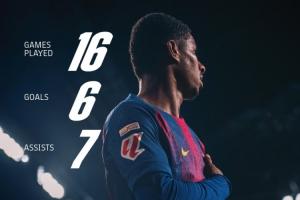 巴塞羅那官方也曬出拉什福德的數(shù)據(jù),并且配文:16場6球7助,拉什福德勢不可擋??