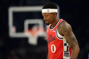 上一場(chǎng)對(duì)陣太陽的比賽,比爾遭遇左臀酸痛,最終出戰(zhàn)19分鐘,9投4中,三分4中2,罰球2中2拿到12分。