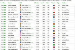 體育資訊11月12日訊 CIES足球天文臺(tái)發(fā)布了最新報(bào)告,公布了全球100名球員應(yīng)獲得的最高年薪。這一統(tǒng)計(jì)模型考慮了過去一年中的比賽時(shí)間、比賽水平以及首發(fā)比例等因素,還包括球員的主要位置。在這份報(bào)告中,姆巴佩以應(yīng)得2280萬歐元(僅固定部分)年薪位居榜首。