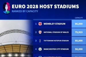 體育資訊11月13日訊 2028年歐洲杯承辦球場公布,德國轉(zhuǎn)會市場列出了各球場容量排名。
