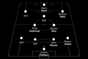 其中,皮克福德將是主力門(mén)將,里斯·詹姆斯是主力右后衛(wèi),斯通斯確定一個(gè)首發(fā)中衛(wèi)位置;中場(chǎng)位置確定了賴斯、埃利奧特·安德森兩個(gè)首發(fā);前鋒位置凱恩、薩卡穩(wěn)坐首發(fā)。