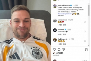基米希社媒曬出自己在醫(yī)療室的照片,并寫道:“遺憾的是這里暫時成為了我的工作場所,我會竭盡全力,爭取在下周一(對陣斯洛伐克)重返賽場?!?/p>
