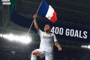 姆巴佩達(dá)成職業(yè)生涯400球里程碑,知名記者羅馬諾社媒曬出海報(bào),對(duì)他表示祝賀。