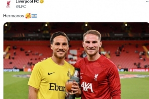 體育資訊11月14日訊 利物浦官方更新社媒動態(tài),曬出麥卡利斯特兄弟的合照。