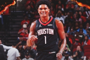 賽后,火箭官方曬出本場贏球海報,封面人物是阿門·湯普森。