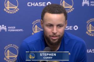 賽后,庫(kù)里出席新聞發(fā)布會(huì),接受了記者的采訪。