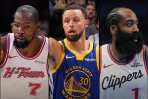 體育資訊11月16日訊 火箭隨隊記者曬出一項數(shù)據(jù)顯示,杜蘭特、庫里、哈登目前都場均25+且真實命中率60%+,具體如下: