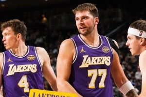 賽后湖人官方發(fā)布海報,東契奇位居C位,里夫斯和克內克特入鏡。