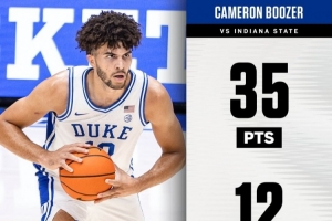體育資訊11月17日訊 在此前的一場(chǎng)NCAA比賽中,杜克大學(xué)100-62大勝印第安納州立大學(xué)。卡梅隆·布澤爾狂砍35分12籃板5助攻3搶斷3蓋帽。而這僅僅是他代表杜克打的第四場(chǎng)正式比賽。