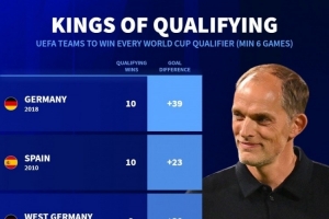 德國轉(zhuǎn)會市場盤點(diǎn)了單屆歐洲世預(yù)賽全勝球隊,德國、西班牙、英格蘭、荷蘭在列。