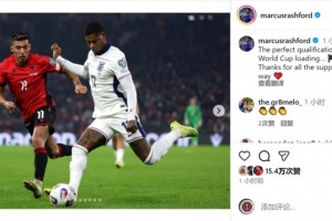 拉什福德社媒曬出比賽照片,并寫道:“完美的世預(yù)賽之旅!世界杯即將到來,感謝大家一路以來的支持。”
