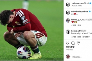 凱爾凱茲此役為匈牙利踢滿全場,但未能幫助球隊(duì)獲得附加賽資格,賽后他在社交媒體上曬出自己蹲在球場內(nèi)失落的照片。