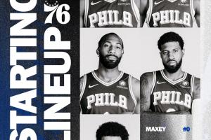 體育資訊11月18日訊 76人官方公布了今日對(duì)快船的先發(fā)五人,喬治迎來賽季首秀!