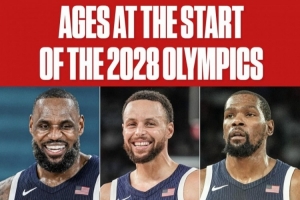 如果屆時庫里、詹姆斯、甚至是杜蘭特參加洛杉磯奧運會,他們三人的年齡將分別是43歲、40歲和39歲。