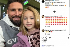體育資訊11月19日訊 法國(guó)前鋒吉魯如今重返祖國(guó)效力里爾,作為一名父親,他在社交媒體上曬出了自己和女兒的合照并祝其5歲生日快樂(lè)。