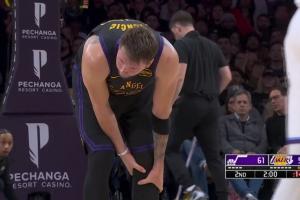 GIF-東契奇落地時(shí)被喬治壓了一下?。?/p>