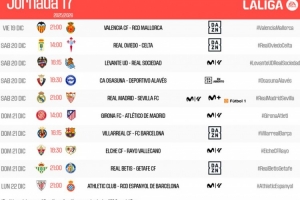 體育資訊11月19日訊 西甲第17輪各場開球時間公布,12月21日4點(diǎn)皇馬vs塞維利亞,23:15比利亞雷亞爾vs巴薩。