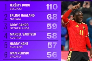 體育資訊11月20日訊 本屆世歐預(yù)小組賽已經(jīng)告一段落,squakwa也統(tǒng)計(jì)了本屆賽事在對(duì)方禁區(qū)內(nèi)觸球情況,曼城邊鋒多庫斷崖領(lǐng)跑。