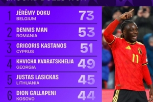 1.杰里米·多庫(比利時),73次