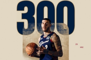 比賽首節(jié),騎士球員朗佐·鮑爾替補(bǔ)出戰(zhàn)。球隊(duì)官方也曬出海報(bào),祝賀鮑爾達(dá)成生涯300場里程碑。