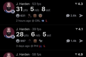 過去四場比賽,哈登都砍下了25+5+5的數(shù)據(jù),據(jù)數(shù)據(jù)媒體Real Sports,36歲87天的哈登是達成這一成就的最老后衛(wèi)。