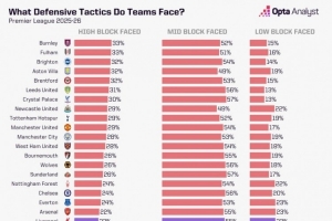 球隊(duì)列表及對(duì)應(yīng)數(shù)據(jù)(面對(duì)高位防守占比-面對(duì)中位防守占比-面對(duì)低位防守占比):
