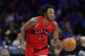 猛龍球員奎克利上半場在進攻端效率不錯,尤其是三分線外手感火熱。